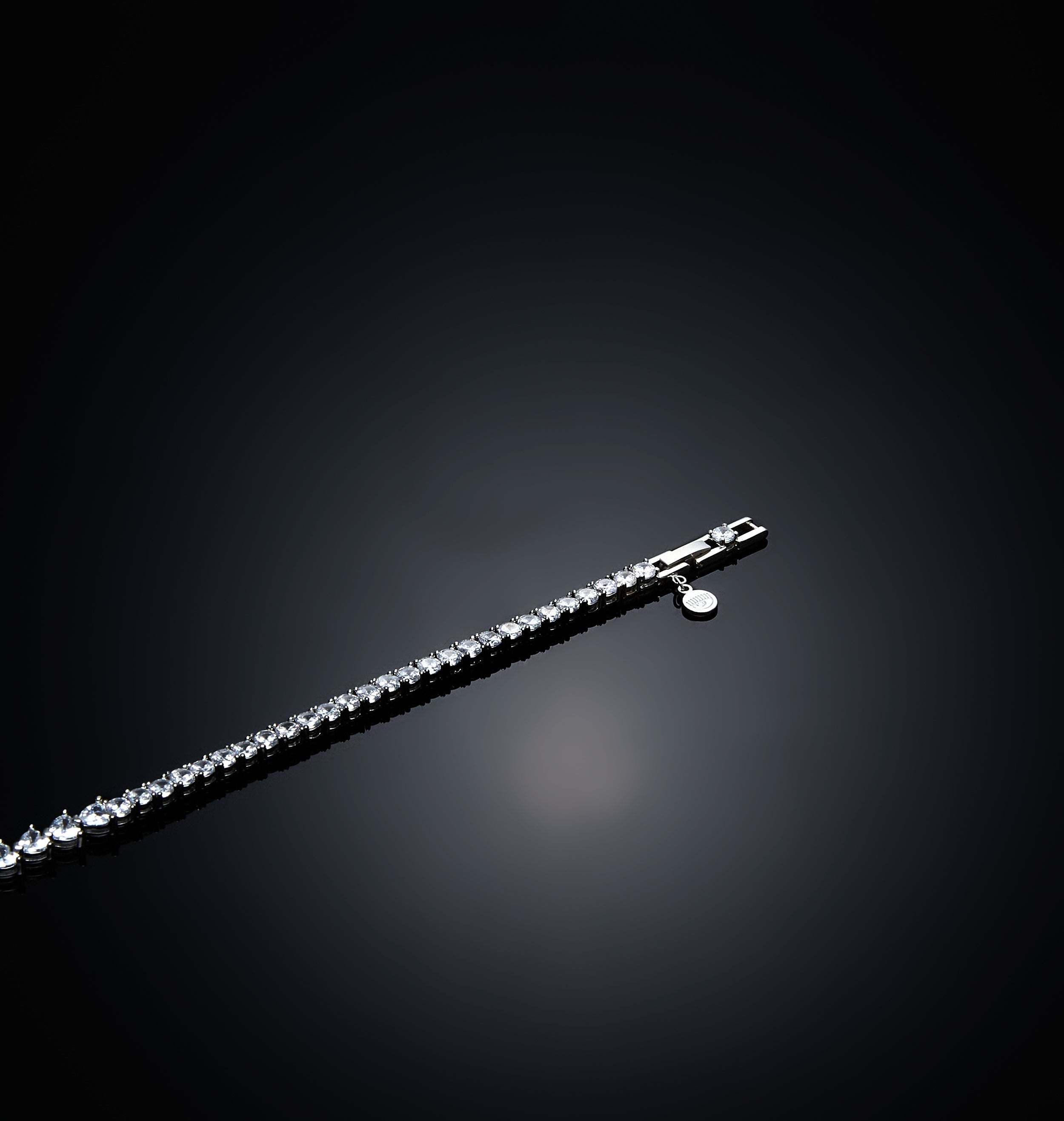 Necklace with rhodium-plated white cubic zirconia. The stones feature two different cuts, round and heart-shaped. The central pendant measures 14 x 14 mm.