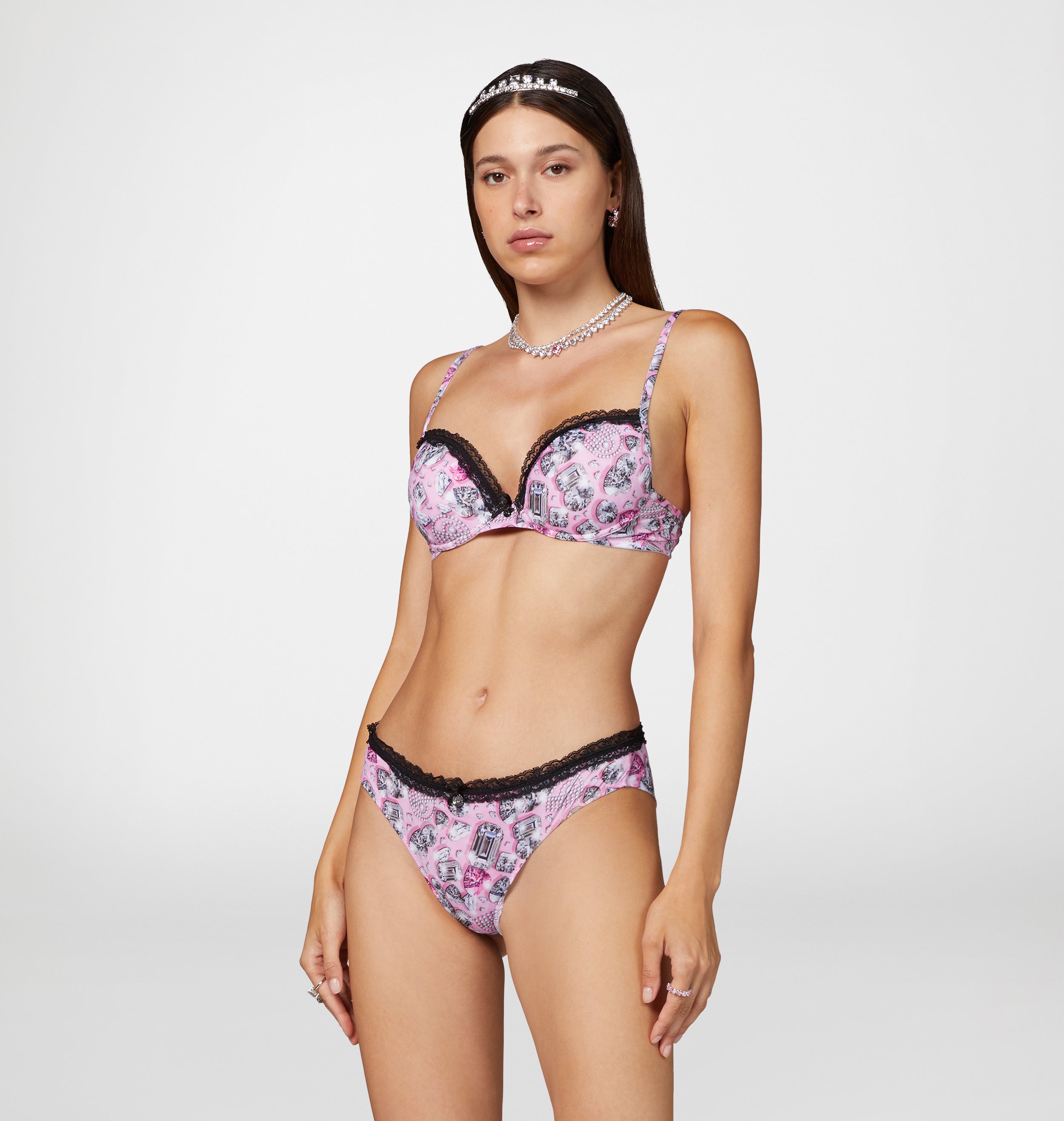 Gem print push-up bra with black lace detail and Eye Charm.
