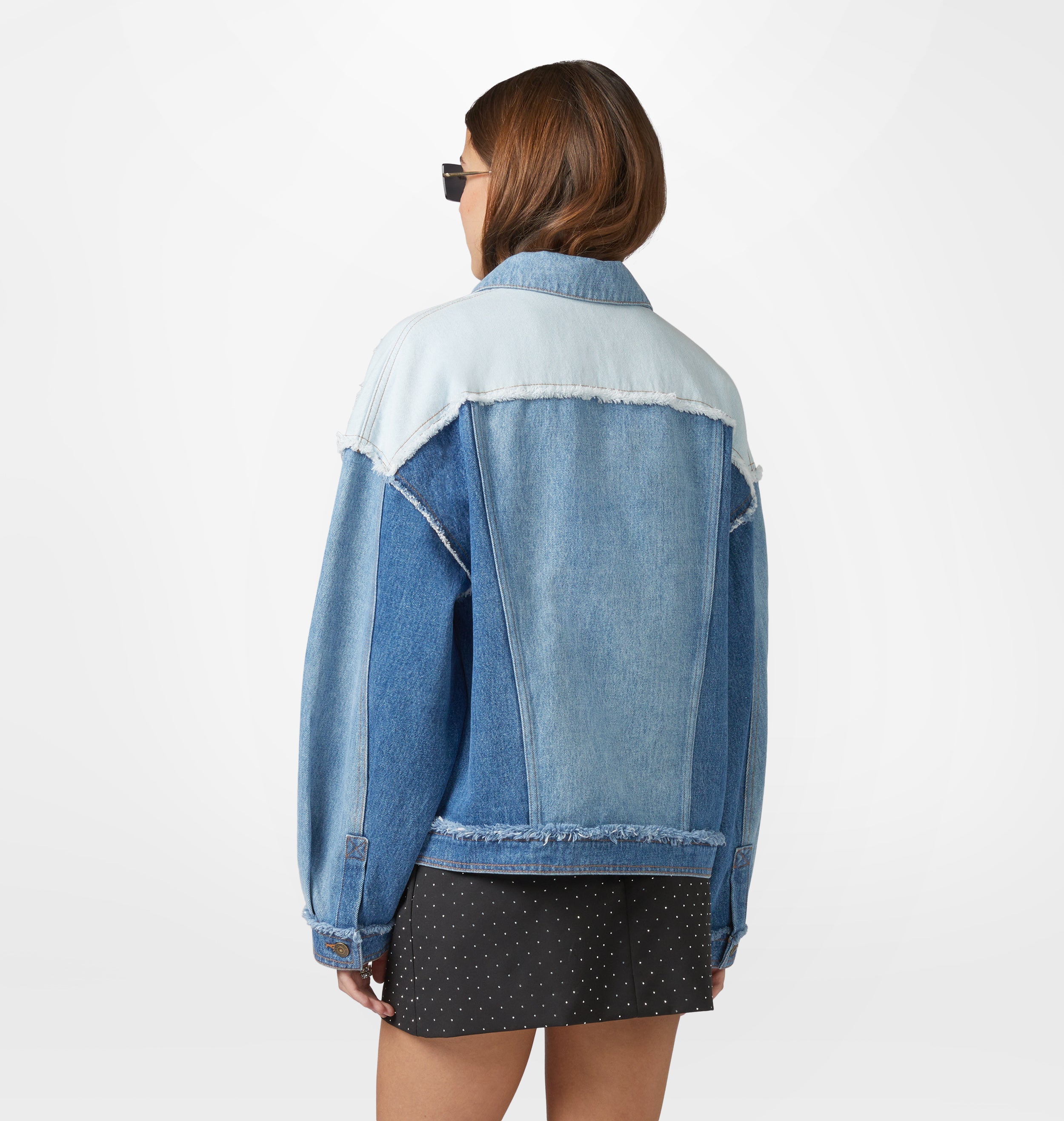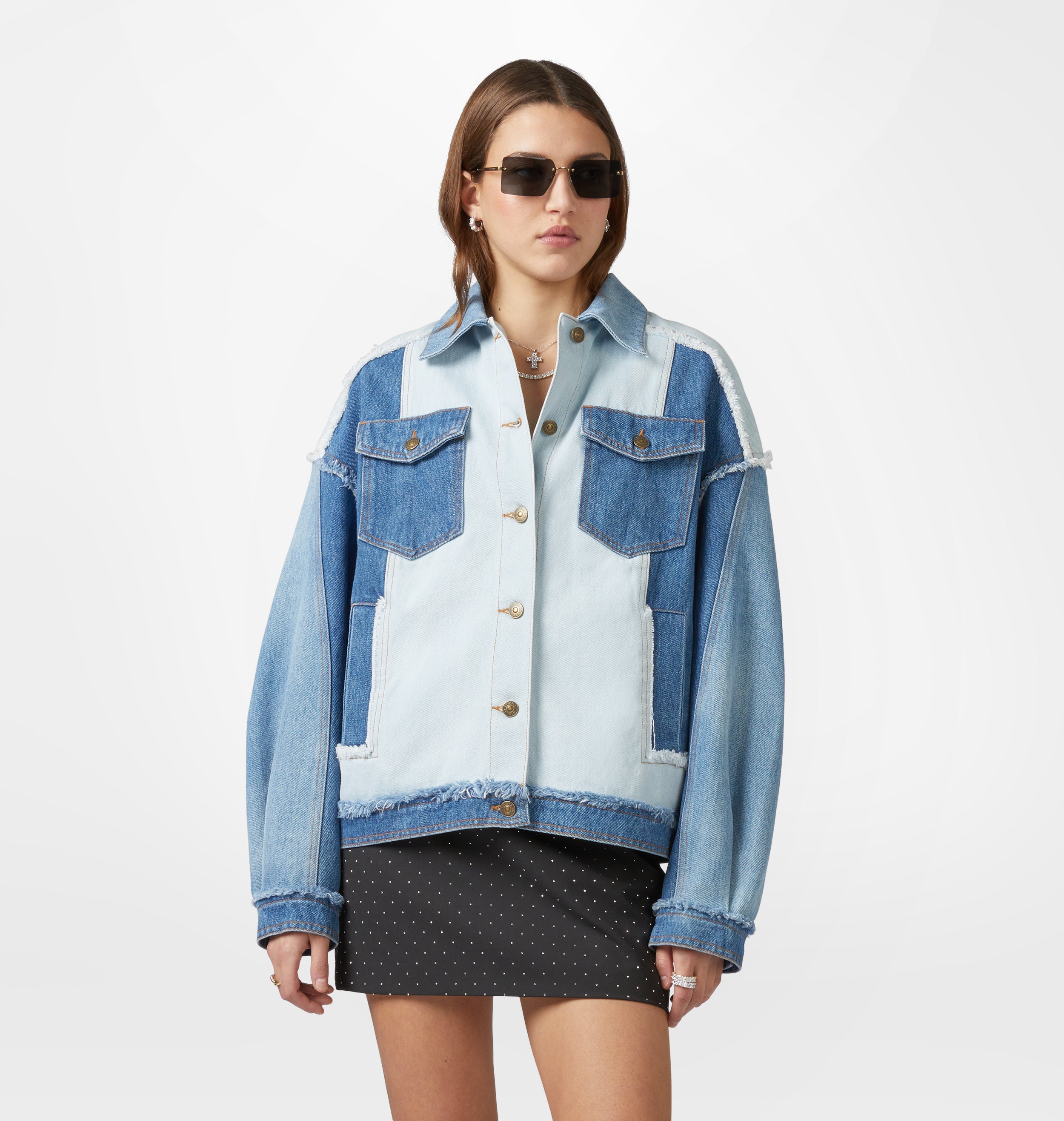Frayed patchwork denim jacket, over fit.