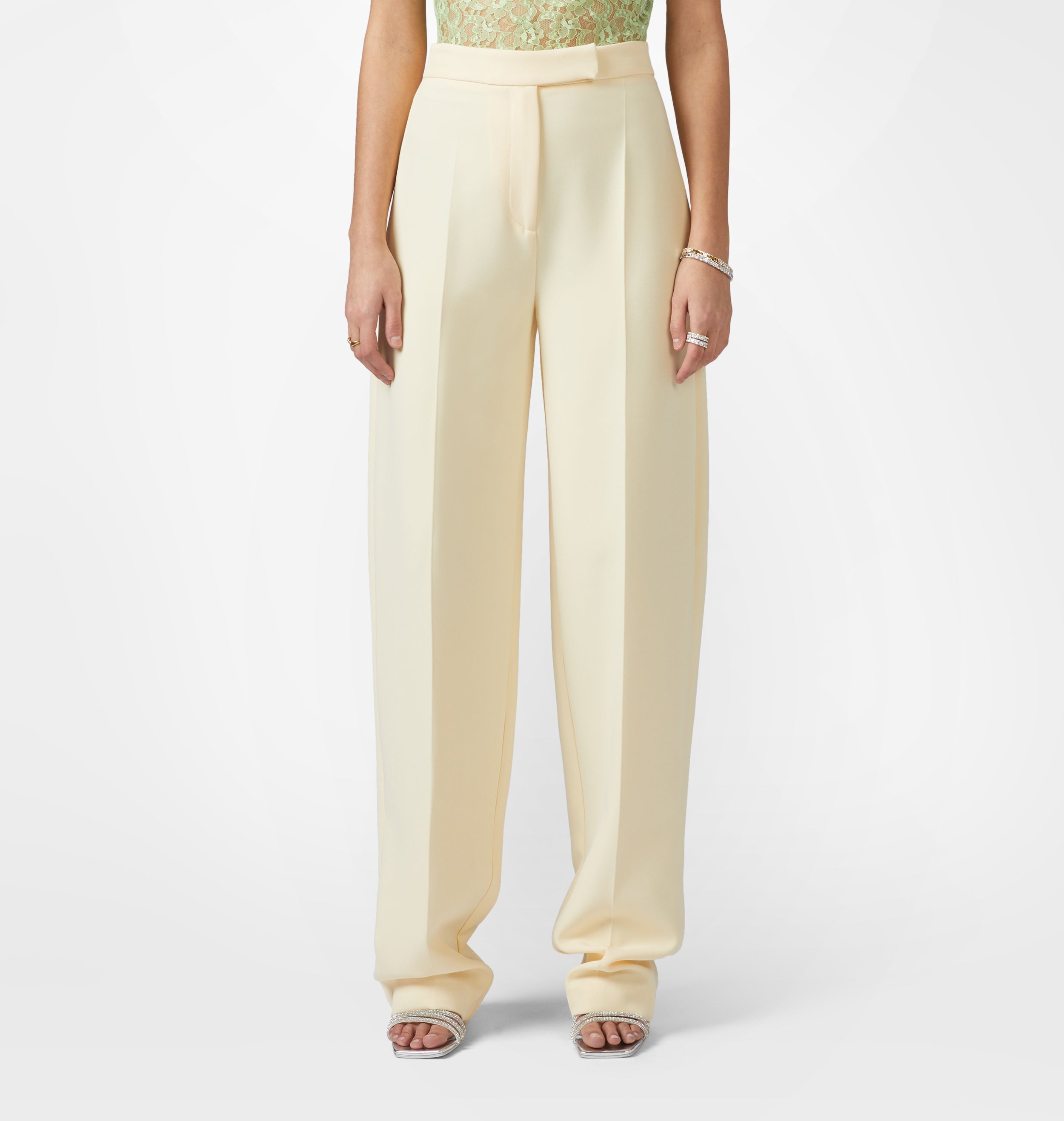 High-waisted trousers in apricot-yellow stretch cady, wide leg that narrows at the ankle.